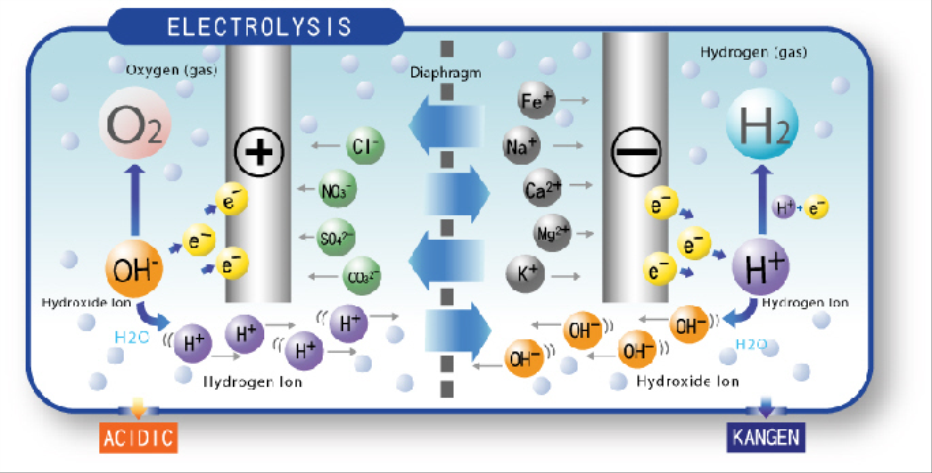 Le Système Kangen d’Enagic® en filtre les éléments nocifs. Il sépare ensuite l’hydrogène et l’oxygène par électrolyse.